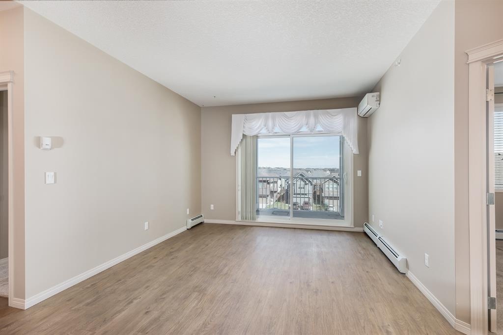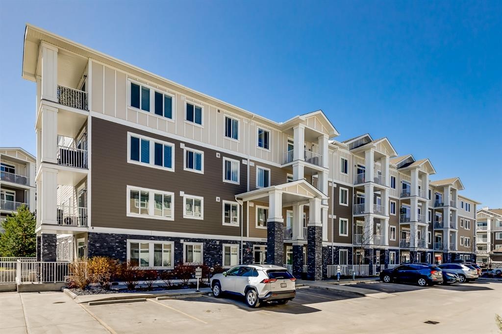 Welcome to this two bedroom two bath TOP FLOOR condo apartment in Cranston Ridge! The bright and open floor plan is well designed offering a spacious living room with patio door to the balcony with BBQ gas line; gourmet kitchen with ample white cabinets, quartz counter tops with breakfast bar and stainless steel appliances; adjacent dining room and insuite laundry room with full size washer and dryer and plenty of storage. The bedrooms are on opposite sides of the living space providing privacy for a room mate or guests. The generous size primary bedroom features a walk-in closet and 3 piece ensuite with large shower enclosure. A good size second bedroom and nearby 4 piece bathroom complete this home. Other special features include LVP flooring in main living area, air conditioner, titled underground parking with secure storage locker and visitor parking just outside the main entrance to the building. This location offers easy access to Fish Creek Park, bike paths, schools, South Health Campus, shopping, and major traffic routes including Stoney Tr and Deerfoot Tr.